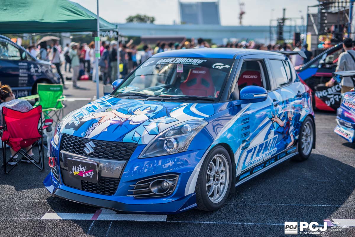 痛G2015inお台場 2015年10月12日 1200 × 801 自慢の痛車が集まる祭典!痛Gふぇすた お台場2015(激選90枚) スイフトスポーツの東方チルノ痛車。このままGTレースに出れそうなデザイン。000痛G2015inお台場